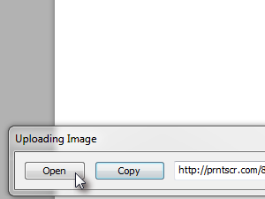![]() V spodnjem oknu se bo sedaj prikazala povezava do spletne strani, kjer se nahaja vaša nova slika. Lahko tudi kliknete gumb Open, da si ogledate stran.