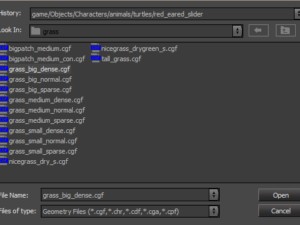 mapa kjer imate program shranjen/CryEngine 3/Game/Objects/ Tukaj si poiščete kaj želite reliefu dodati. Ker sem jaz hotel travo sem šel pod natural/ground_plants/grass Ko si izberemo poljubni predmet stisnemo open (lahko dodamo več predmetov tako da držimo ctrl). |