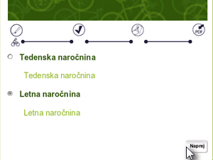 ![]() Prikažejo se vam dve možnosti za naročilo. Tedenska stane 1€, Letna naročnina pa 3€. Mislim, da je bolj logično, da vzamete letno, saj nikoli ne veste, kdaj vam bo lahko mestno kolo prišlo prav. |