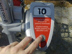 ![]() Postavite se k kolesu z prej izbrano številko in pritisnite gumb pri njemu, da ga odklenete. |