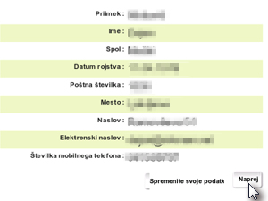 ![]() Ponovno se vam prikažejo vsi podatki, ki ste jih vnesli. |