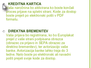 ![]() Sedaj imate dve možnosti plačila. S kreditno kartico ali pa direktno bremenitvijo, kar vam bo vzelo tudi tri tedne časa. za več vprašanj se obrnite na forum, mi vam bomo predstavili način plačevanja s kreditno kartico. |