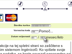 ![]() Sedaj vpišite številko vaše kreditne kartice, varnostno kodo in datum veljavnosti. |