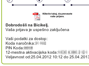 ![]() Tretji korak je prva prijava v sistem Bicikelj. |