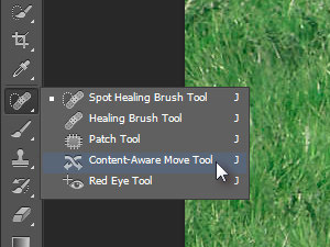 ![]() Izbral sem novo orodje Content-Aware Move Tool. Držite z miško na orodju Spot Healing Brush Tool (bližnjica je tipka J) toliko časa, dokler se vam ne prikažejo ostala orodja.