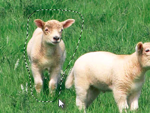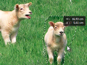 ![]() Photoshop je avtomatsko prejšnji del fotografije zapolnil, na novega pa prilagodljivo kopiral ovco. |