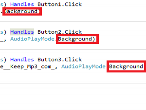 Če želimo, da se glasba predvaja le enkrat, na koncu kode izbrišemo besedo Loop, da nam ostane le: AudioPlayMode.Background |