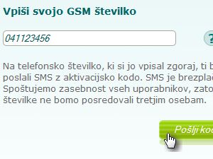 V obliki SMS sporočila smo prejeli tudi aktivacijsko kodo, ki jo vpišemo v ustrezno polje. Nato potrdite registracijo. |