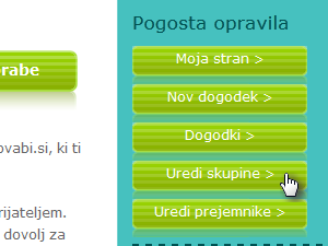 Za organiziranje dogodkov priporočam, da najprej uporabnike uredite v skupine.