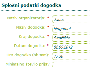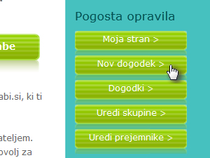 Sedaj bomo dodali nov dogodek s klikom na Nov dogodek.