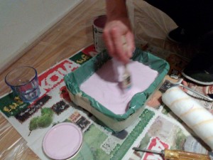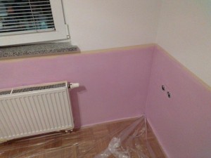 Potem pa začel barvati del stene, ki sem ga zaščitil.