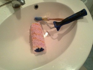 Obvezno pa čopič in valj za barvanje umijte, da se barva na njih ne bo strdila.