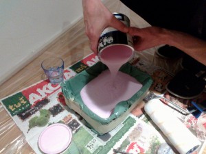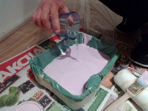 Sedaj pa vzemite barvo in jo zlijte v posodo.