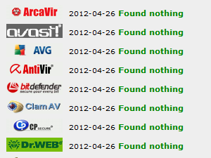 Če vsi protivirusni programi vrnejo rezultat Found nothing, potem ste lahko že precej prepričani, da datoteka ni okužena. |