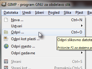 ![]() Sedaj preko menija Datoteka->Odpri... odprete poljubno sliko .. |