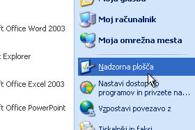 Kliknite na gumb Start in izberite Nadzorna plošča.