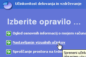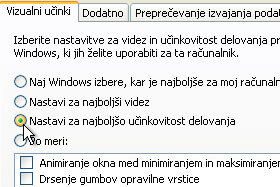 Kliknite na Nastavljanje vizualnih učinkov. |