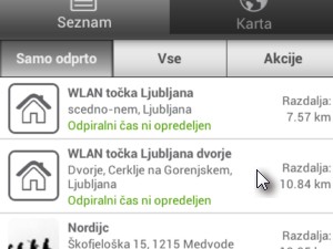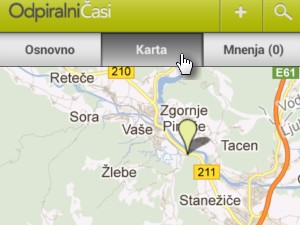 ![]() Če kliknemo na posamezno lokacijo, si lahko ogledamo, kakšen je odpiralni čas, poleg tega pa najdemo tudi dodatne informacije o tej lokaciji. |