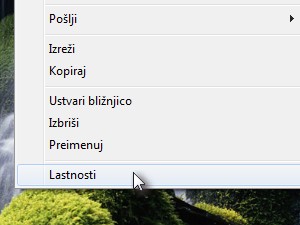 Na ikono kliknemo z desnimi miškinim gumbom.