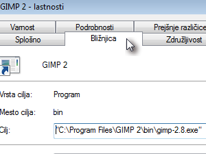 Na Namizju najdemo bližnjico do programa, kateremu želimo ob zagonu določiti dodatne parametre.