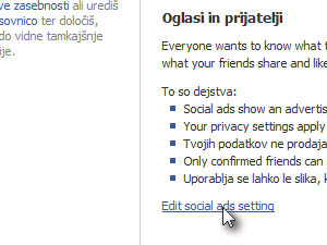 Na novi strani kliknite spodaj na Edit social ads setting.