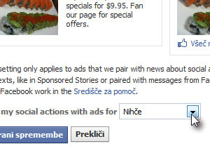 Sedaj pa na strani poiščite Pair my social actions with ads for in nastavite Nihče.