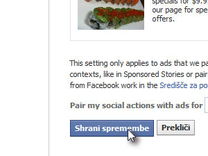 Kliknite na gumb Shrani spremembe in prikazovanje reklam z uporabo vaših podatkov oziroma vaše osebne slike bo onemogočeno.