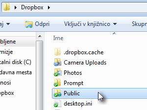 ![]() Če odprete vašo Dropbox mapo, boste v njej že našli mapo Public, ki je namenjena javnem vpogledu. |