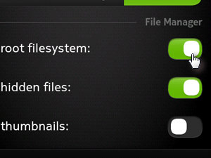 Odprejo se vam nastavitve, kjer omogočite možnosti Show root filesystem in Show hidden files.