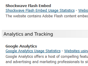 Vidimo, da stran uporablja Shockwave Flash, prav tako pa se poslužuje tudi Google Analytics.