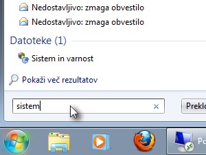 Kliknemo gumb Start in v iskalno polje vpišemo sistem