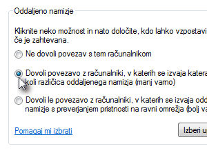 ![]() Najprej moram na računalniku, na katerega se bomo povezovali, dovoliti možnost dostopa preko Oddaljenega namizja.