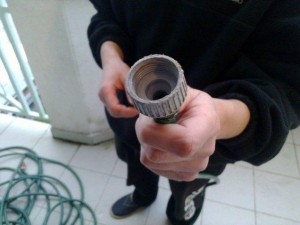 Drugi del cevi za vodo pa sem pritrdil na visokotlačni čistilec.