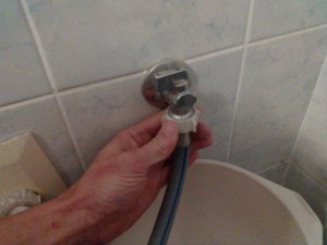 Zato bom cev za pralni stroj odstranil, še prej pa zaprl dotok vode, da ne bom naredil poplave. |