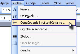 Kliknite na Oblika in izberite Označevanje in oštevilčevanje ...