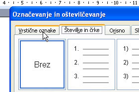 Odpre se vam okno Označevanje in oštevilčevanje, kjer lahko poljubno nastavljate oznake za vaše odstavke.