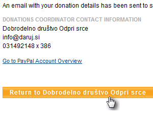 Dobite še potrditev, da je bila donacija uspešno izvedena.