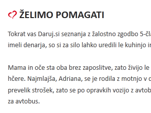 Tokrat bom predstavil spletno stran daruj.si, preko katere lahko tudi z majhnim prispevkom pomagamo drugim, ki imajo manj sreče v življenju.
