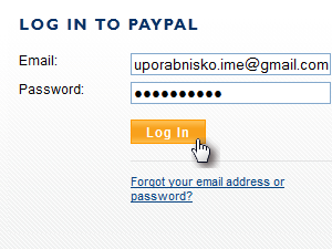Stran nas preusmeri na prijavo PayPal, kjer vpišete podatke vašega PayPal računa.