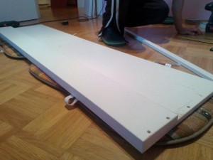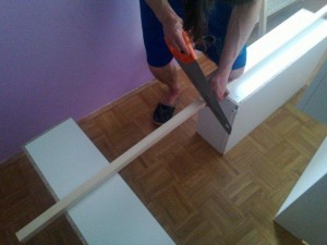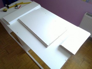 Pri predalih sem uporabil les, ki je debel 1,2 centimetra in ne standardne mere 1,8 centimetra.