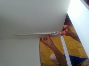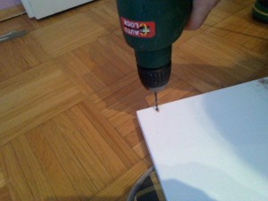 Ne pozabite, če je leseni del debel 1,8 centimetra, je potrebno izmeriti sredino, v tem primeru 0,9 centimetra. V primeru dveh vijakov na eni strani, je najbolje in najlepše oba priviti na isti višini (se pravi 4 centimetra od vrha ali dna). Za več informacij pa kar vprašajte na forum ...