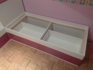Ker rad izkoristim vsak del pohištva, bo postelja imela spodaj še dva predala.
