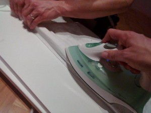 Potem trak položite na del, kjer ga ni in ga s pomočjo likalnika prilepite.