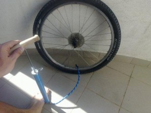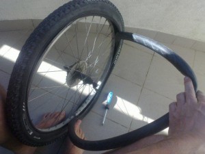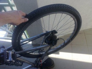 Ko bo zračnica na svojem mestu, nastavite še plašč od kolesa ...