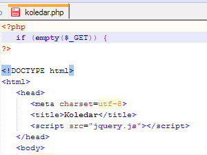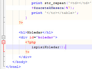 Ko odpremo našo datoteko koledar.php, želimo, da se nam prikaže koledar za trenutni mesec. Dodamo torej: