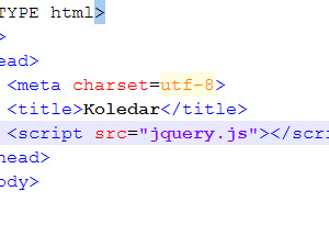 To datoteko premaknite v mapo, kjer delamo naš koledar. Knjižico bomo vključili v stran z naslednjo kodo (kot vidite, script značka ne potrebuje več atributa type) <script src="jquery.js"></script>