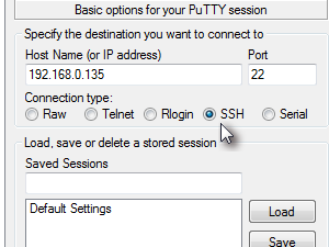 Sedaj se lahko preko putty-a povežemo na SSH strežnik.