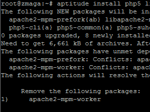 aptitude install php5 libapache2-mod-php5 Namestitev potrdimo z Y. |
