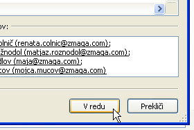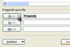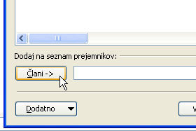 Odpre se okno, kjer bomo dodajali stike v seznam prejemnikov.