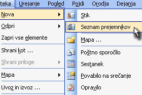 Kliknite na Datoteka, Nova in izberite Seznam prejemnikov. |
